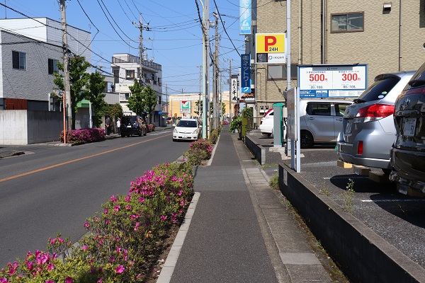 バス停を降りたら道路に向かって左手に進みます。